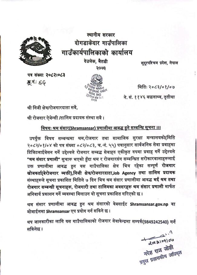 » श्रम संसार (Shramsansar) प्रणालीमा आवद्ध हुने सम्बन्धी सूचना ।।।